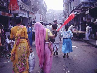 embroidered saris, vivid pink-and-green sweetmeats. The famous Mumbadevi